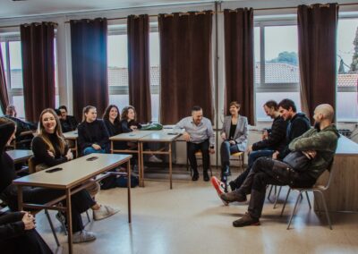 Kao jednu od aktivnosti vezanih uz naš projekt “Prava faca hranu ne baca”, u okviru prigrama RAST CI SDŽ i S.A.V.E.- inicijative, u prosincu 2023. posjetili smo SŠ Blaž Jurjev Trogiranin i uspostavili ugodnu suradnju i međuvršnjačko učenje naših učenika ekonomista i gimnazijalaca i mladih kuhara u organizacijii nastavnica Vjere Stojan, Anite Klarić, Lucije Dražić-Šegrt i Marija Pavića. Jedni drugima su izložili što sve znaju o konceptu Zero Waste i zašto je bitno da nam svima bude cilj održivi razvoj, poštovanje namirnice, smanjenje biootpada u ugostiteljskom objektima i u kućanstvima te kako poticati jedne druge na odgovorno ponašanje. Mladi kuhari, pod mentorstvom prof. Marija Pavića, pokazali su nam svoje vještine u školskoj kuhinji i njihovim radnim jedinicama, a naši su učenici u njihovom školskom restoranu izložili svoje plakate koji gostu sugeriraju da slobodno pitaju doggy bag za ponijeti svoje ostatke hrane, a sve u cilju smanjenja nastanka otpada od hrane.