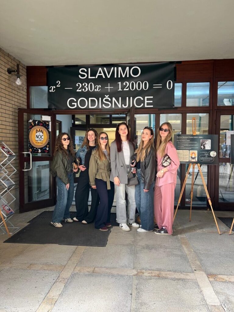 U sklopu izvannastavnih aktivnosti i poticanja interesa za prirodoslovno područje, naše maturantice su 17.travnja 2026., u pratnji nastavnice matematike Ivane Maglice, sudjelovale na manifestaciji „Dan i noć na PMF-u“, koja se tradicionalno održava na Prirodoslovno-matematičkom fakultetu u Zagrebu. Riječ je o znanstveno-popularnom događanju čiji je cilj približiti znanost široj javnosti, osobito učenicima osnovnih i srednjih škola.