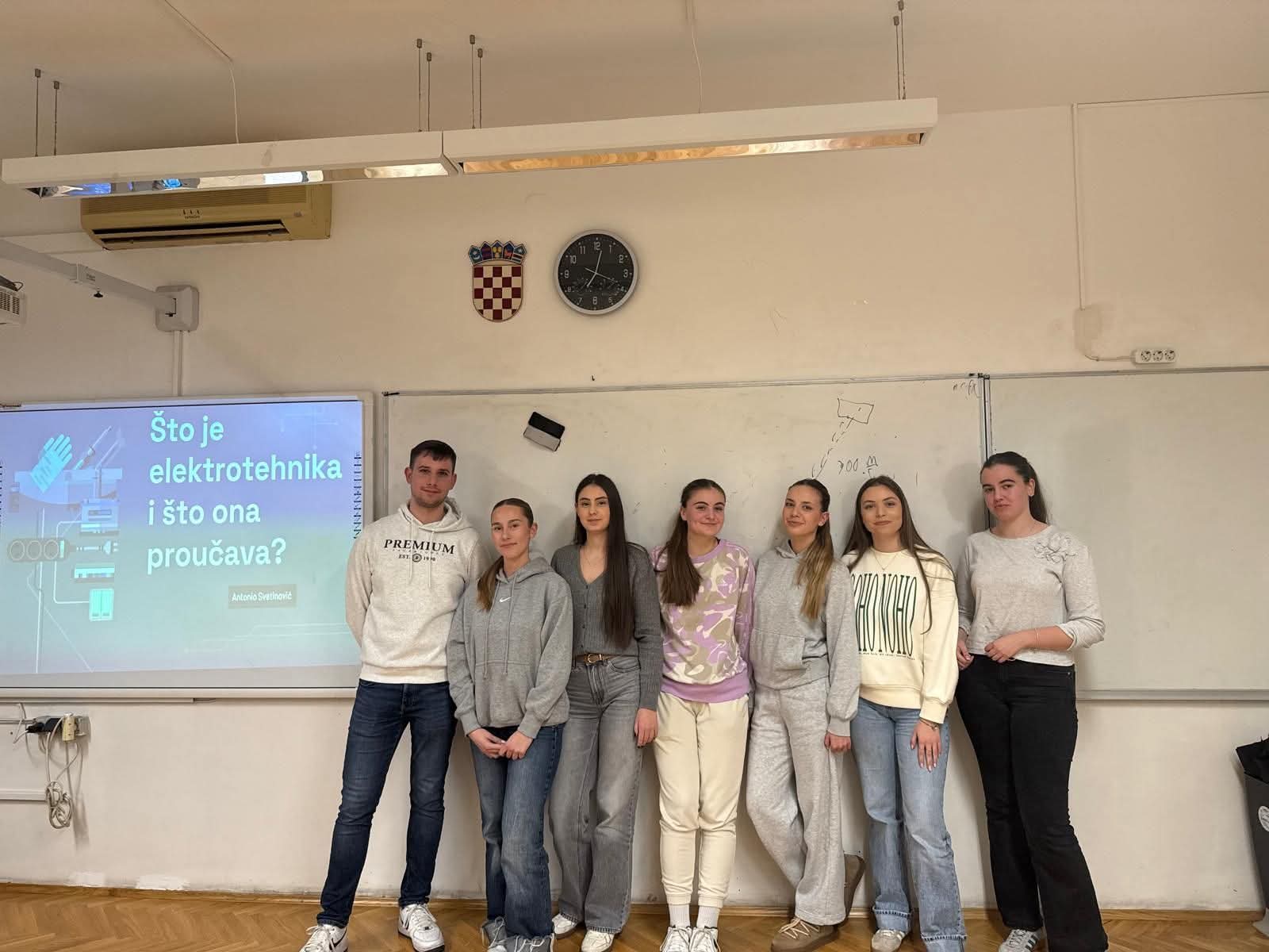 Prošlog petka, 23. siječnja 2026., u našoj školi održano je zanimljivo predavanje „Elektrotehnika i što ona proučava“. Predavanje je vodio student Fakulteta elektrotehnike i računarstva (FER-a) – Antonio Svetinović. Učenici su imali priliku postavljati pitanja i saznati više o ovom uzbudljivom području.
