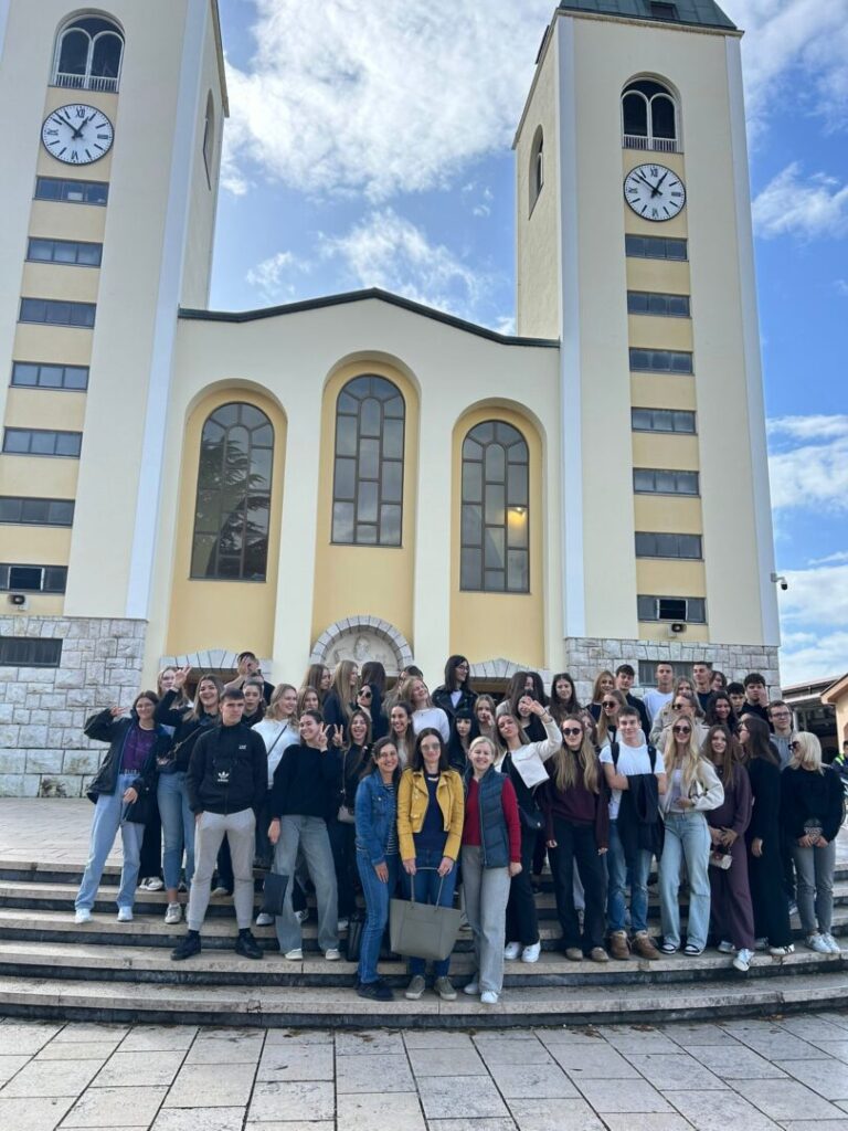 U subotu 25. listopada 2025. god. učenici naše škole – gimnazijalci i ekonomisti, proveli su dan koji ćemo još dugo pamtiti. U pratnji naših profesorica Anite Vuletin i Danijele Šustić Jijena Sanchez te ravnateljice Vjekoslave Radić, prvo smo posjetili komunu Cenacolo u Međugorju, gdje smo slušali dirljiva svjedočanstva njezinih članova koja su nas zaista potaknula na razmišljanje. Nakon odslušanih svjedočanstava donirali smo štićenicima komune slatkiše i pisali im poticajne poruke. Nakon izlaska iz komune, učenici su kupili izvorne neretvanske mandarine za čitavu ekipu pa je cijelim putem autobus mirisao po njima. Taj miris mandarina uz smijeh i veselo raspoloženje pratio nas je sve do povratka. Posjetili smo i središte Međugorja te poznatu crkvu sv. Jakova, a zatim smo se uputili prema Mostaru.Tamo nas je dočekala kiša, ali nas ništa nije moglo zaustaviti. Prošetali smo starim gradom, posjetili franjevačku crkvu sv. Petra i Pavla, Stari most, razgledavali štandove i uživali u tradicionalnoj hrani. U autobusu je vladala odlična atmosfera. Pjevali smo svi zajedno, a neki su učenici zabavljali ekipu glumeći vodiča. Na kraju se sve pretvorilo u pravi mali molitveni skup. Molili smo krunicu, a cijelim putem pratio nas je Gospodinov duh, koji je dodatno ispunio naša srca mirom i radošću. Bio je to dan ispunjen zajedništvom i srećom, dan koji će još dugo živjeti u nama i dan koji ćemo pamtiti po svjedočanstvima iz komune, osmjesima, kapima kiše, mirisu mandarina, molitvi i onom posebnom osjećaju da smo svi bili jedno.