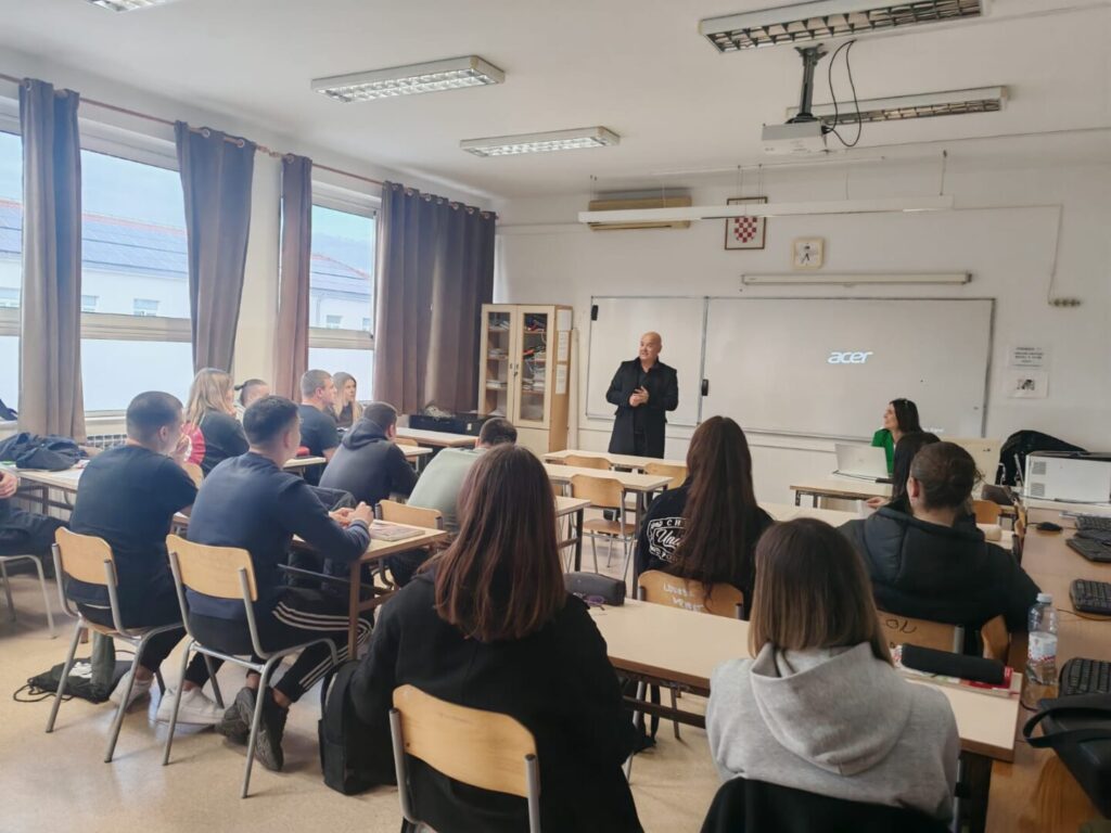 U sklopu aktivnosti, predstavnici društva, Ana-Marija Mišić i Nikola Miše, održali su zanimljivo i interaktivno predavanje tijekom kojeg su učenici upoznati s osnovnim vrstama osiguranja. Predavanje je organizirano u okviru nastavnog predmeta Bankarstvo i osiguranje za učenike četvrtog razreda, u suradnji s profesoricom Nives Miše Buličić.